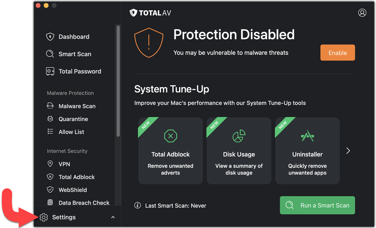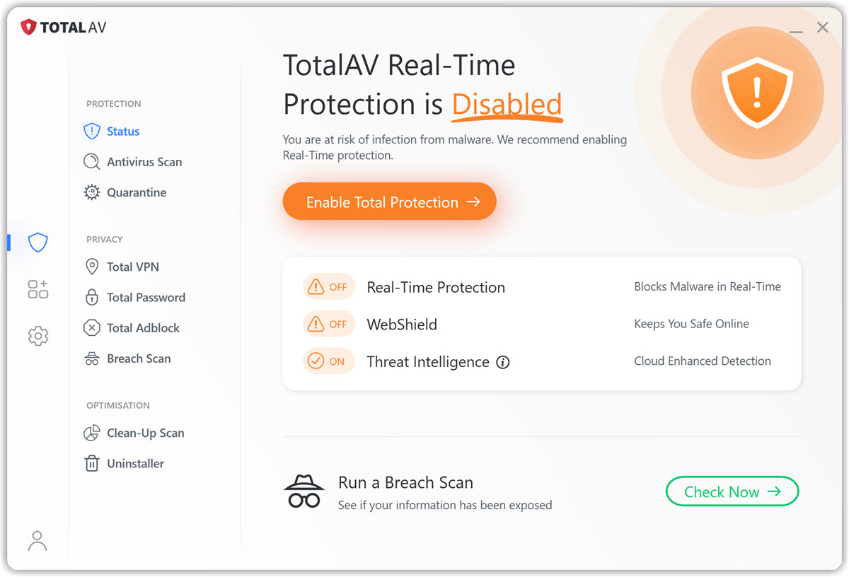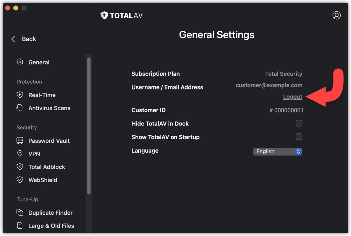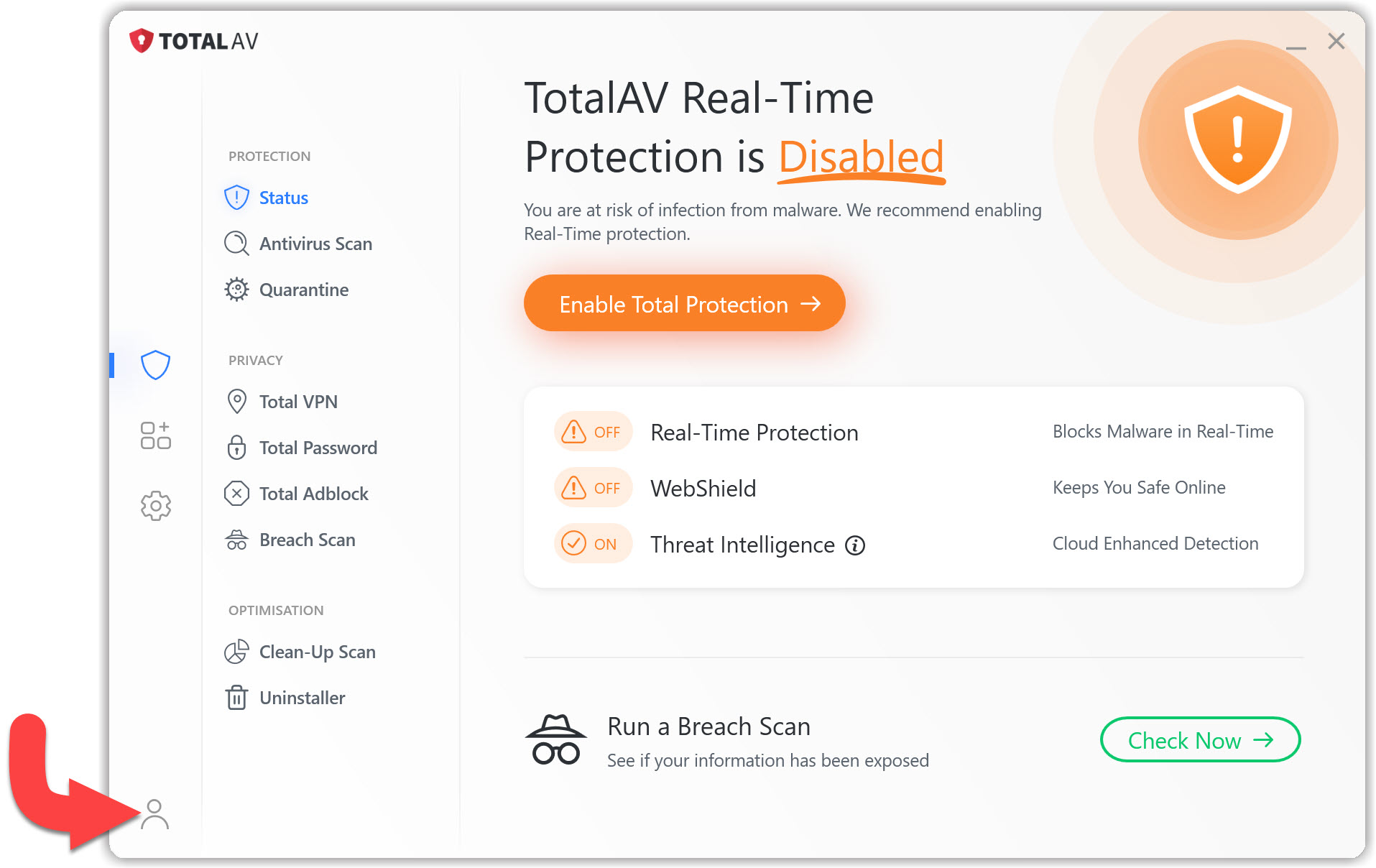 Go to the bottom left of the TotalAV application, and click on the My Account icon.